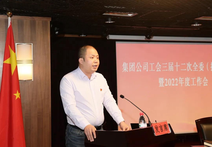 乐玩(中国)工会常务副主席刘岩松以《贯彻落实第四次党代会精神,坚持政治引领,创新工作理念,精准服务职工,为建设国内知名的创新型企业集团共同奋斗》为题作工作报告;经审委副主任高宇飞作《2021年度集团工会经审工作报告》;集团工会常委张艳明宣读《关于表彰2021年度工会先进集体、工会先进干部和积极分子的决定》。