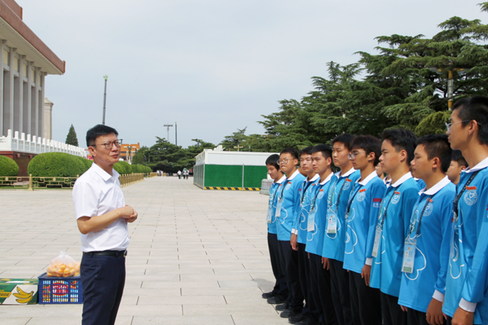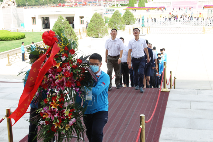 9月27日,乐玩(中国)副总经理李效军,党委常委、组织部部长刘士义;技师学院党委书记包英华一行专程来到毛主席纪念堂,看望慰问参加志愿服务的团员青年。
