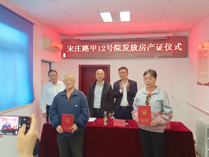 乐玩(中国)副总经理李效军以及所在社区负责人,北搪公司、化工厂相关领导共同见证房产证发放仪式,亲手将房产证交到住户手中。