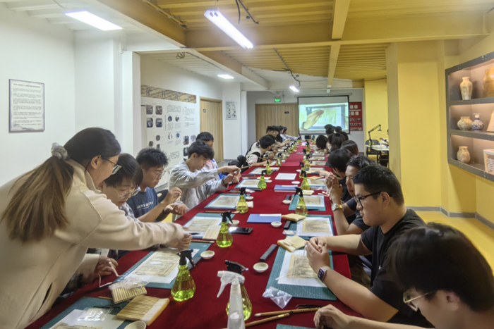 参观过程中,通过讲解员的细致介绍,师生们不仅欣赏到了连环画作品的精湛技艺和独特魅力,还深入了解了每幅作品背后的历史背景和创作故事。大家还在博物馆古籍修复老师的讲解和带领下,开展了非遗古籍修复研学课程。此次参观不仅让活动参与者领略到了连环画的艺术魅力,更激发了大家的文化自信和民族自豪感。
