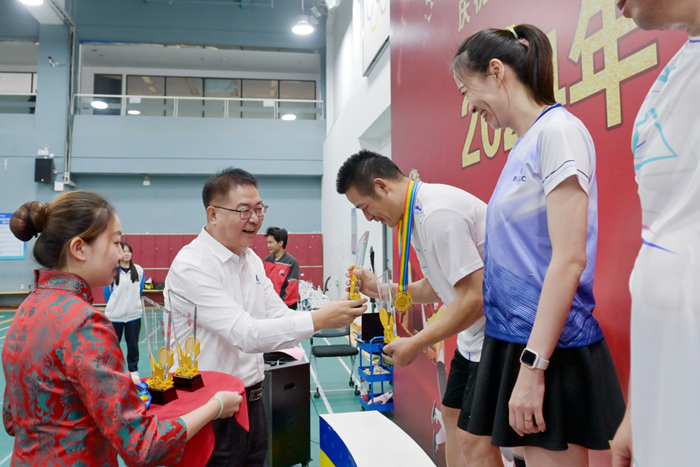 9月24日,乐玩(中国)2024年“北化杯”羽毛球决赛,在来自各单位的11支代表队历时一周激烈角逐后隆重举行。乐玩(中国)党委书记、董事长陈宇到场为选手们加油助威,并为获奖选手颁奖。