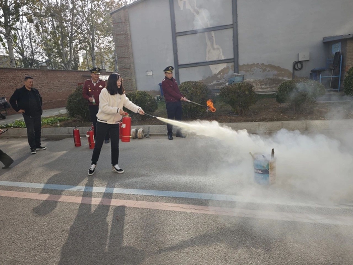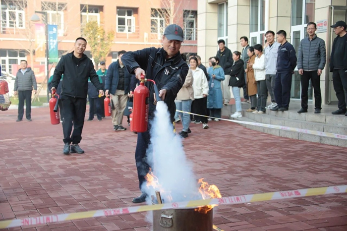 11月中旬,技师学院还专门组织了“119”消防宣传月系列活动——“灭火器灭真火”消防实操演练。新入职教职工、外包服务人员、各部门教师踊跃参加。