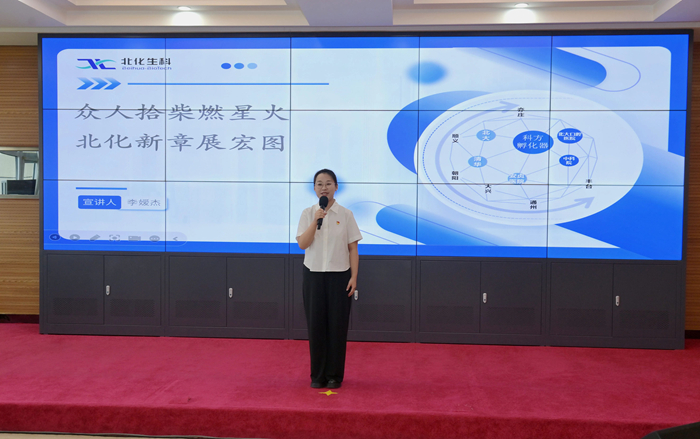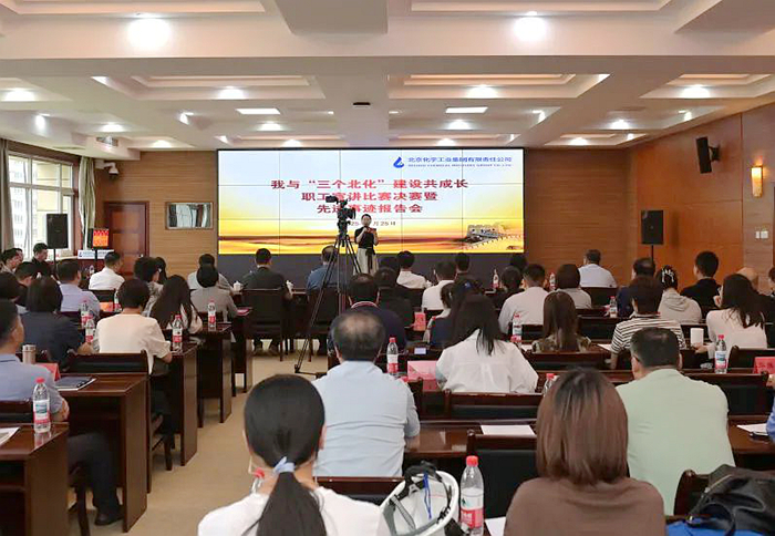在首先举行的“职工宣讲比赛决赛暨先进事迹报告会”上,从预赛29名参赛者中脱颖而出的选手们,依次走上讲台,深情宣讲扎根“三个北化”建设一线的鲜活故事。来自北化生科、华腾检测、化研院、北搪公司的4名宣讲员进行了精彩的宣讲展示,他们生动讲述了北化人面向生物医药新“蓝海”的无畏拓进,在市场营销、科研开发、信访维稳等重点工作中攻坚克难的感人故事。来自技师学院、北普公司、北化房地产公司的3名宣讲员进入决赛,他们或讲述职业教育的酸甜苦辣、或反映现代产线的纷繁复杂、或展示酒店行业的微笑服务,娓娓道来的深情告白,无不体现出北化人心系首都发展安全、情系百姓健康幸福的铮铮誓言。