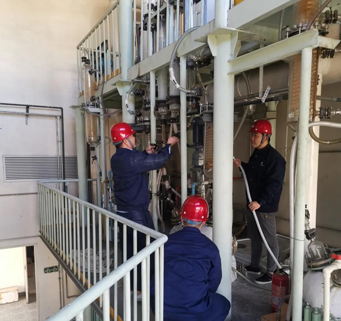 为抢抓市场机遇,试剂所干部职工放弃国庆部分休假,投入到紧张的设备维保和生产中。今年以来,试剂所相关产品市场占有率持续提升,抓生产保供货成为试剂所当前重点任务。试剂所多品种车间、高纯试剂车间和后勤保障等部门的干部职工响应党总支的号召,纷纷放弃国庆假日陪家人、外出旅游的机会,连续奋战在岗位上,开足马力维护设备保运行。