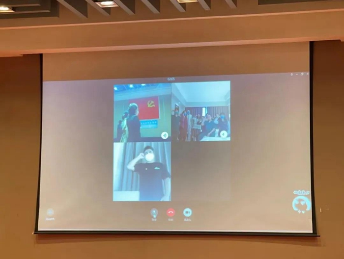 距嘉宾楼不远的另一座楼内,一部分同样表情肃穆、胸戴党徽、身穿防护服的同志们同一时间举起右手,庄严宣誓。