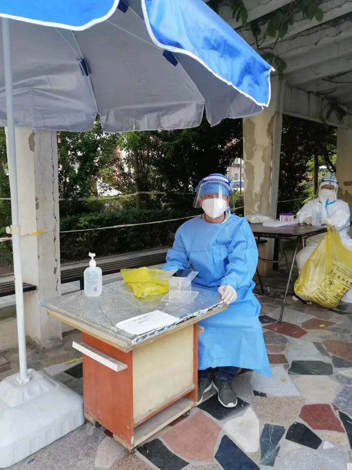 随着天气愈发的燥热,换上大白的我们,衣服瞬间就已经湿透了,但大家没有一句怨言,继续战斗在检测一线。有的时候做核酸的居民太多,我们的医护人员和志愿者不能按时吃饭,好在小区的群众都很配合,一句句“谢谢,辛苦了”沁入心脾,真的很感动。