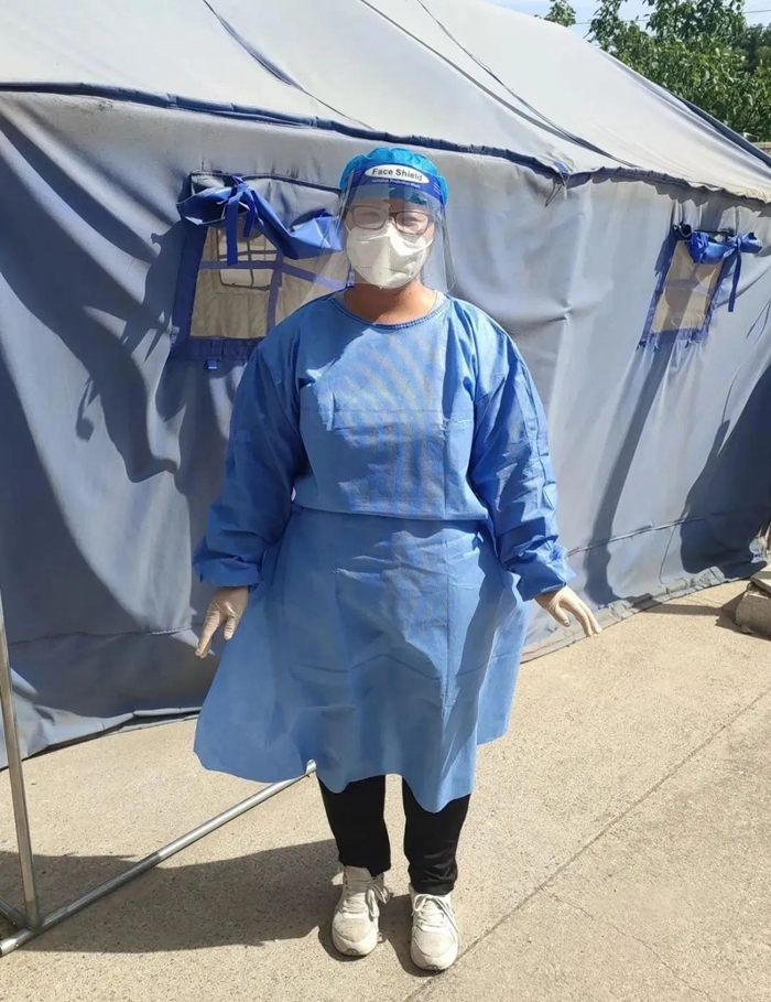 在疫情肆虐的5月,李天琼下沉的北车营村社区由原来的管控区升级为封控区,全村居民禁止外出,核酸检测也由原来的集中检测变为上门检测。由于村子临近山区,村民多为平房住户,这就需要李天琼等社区工作人员每天走在崎岖的山路上挨家挨户检测,而且要身穿全副武装的大白,就这样,每天要完成1500多户检测任务。