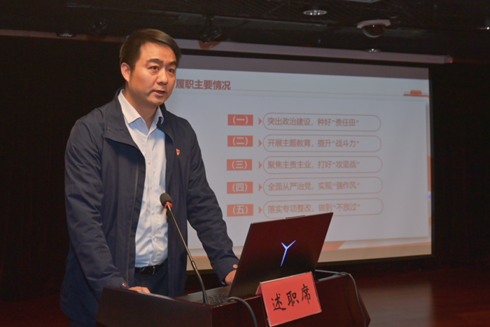 北搪公司、集团总部、华腾东光、华腾冀春和华腾拓展五家单位党组织书记围绕落实2023年度基层党建重点任务,全面总结工作完成情况,深入剖析存在的问题,并提出2024年度工作计划。集团党委常委、纪委书记张中原及党群部门主要负责人、二级单位党组织书记,基层党员干部代表和群众代表参加会议并对述职进行考核测评。