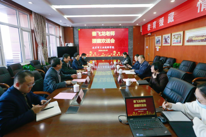 在启程前,技师学院举行秦飞龙老师援藏欢送会。乐玩(中国)党委常委、组织部部长刘士义代表集团党委欢送秦飞龙老师。技师学院有关领导、相关部室和专业系负责人参加欢送座谈。