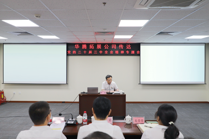 7月31日,华腾拓展公司党总支召开学习贯彻党的二十届三中全会精神专题宣讲报告会,乐玩(中国)总经理助理,华腾拓展公司党总支书记、董事长李泳作宣讲报告。李泳围绕学习贯彻党的二十届三中全会精神,结合集团“231”战略布局、三个“北化”发展方向以及华腾拓展公司工作实际,明确了当前及今后一段时期的重点工作、重点任务。