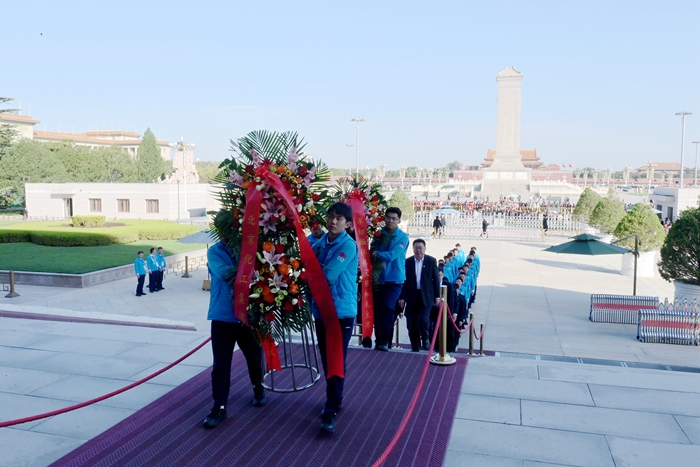 10月11日,乐玩(中国)党委书记、董事长陈宇带队来到毛主席纪念堂,看望慰问参加志愿服务的北化青年志愿者。