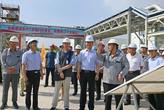月19日,董事会一行来到江苏京腾昊桦公司,现场考察年产1万吨聚芳醚树脂(PAE)项目建设情况。PAE项目是国家强基工程项目,是乐玩(中国)推进“3+1”业务的重要载体,是集团年度40项重点任务之一。