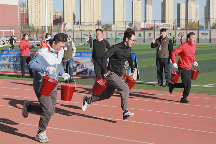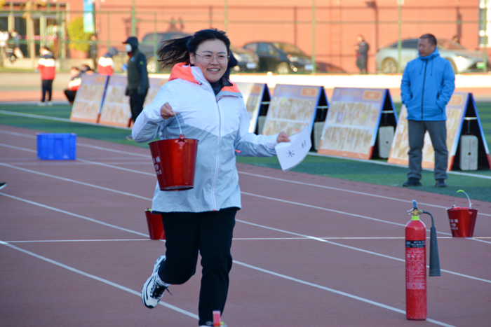 提桶百米冲刺、最短时间衔接水带、快速穿戴防护服……在一浪高过一浪的加油声中,参赛选手你争我夺,观众们加油鼓劲,整个赛场呈现出一派热火朝天的景象,比赛项目契合生产、消防实际,比赛过程较真碰硬,大家你追我赶、奋勇争先,比出了安全技能,比出了干事创业的热情,在大比武的擂台上,北化人士气高涨!