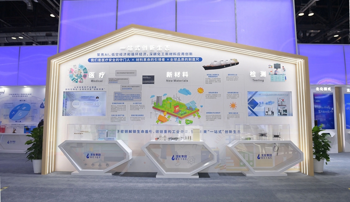 此次“首秀”,乐玩(中国)精心打造了“三个北化”战略主题展区,以及新材料、医疗、检验检测、危化安全、建材、汽车材料六大区域展区,重点展出了化研院、华腾新材等企业的新材料创新产品及服务。现场通过智能AI制造场景化演示,生动呈现PBT、PA66、胶粘剂等乐玩(中国)高性能材料,从建材、消费电子到家用电器,全方位覆盖的产业化应用场景,彰显出“技术+场景”双向赋能的创新生态,而新近成立的北化生科公司,则聚焦生物医药赛道,携优质孵化转化服务项目亮相科博会。
