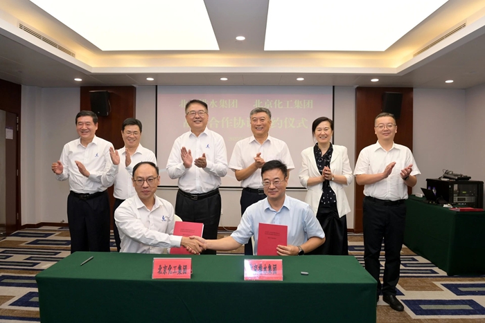 化工集团与排水集团有着长期紧密合作基础,早在本世纪初,双方就在污水处理领域就生产原料采购供应、储存使用以及技术创新等方面开展了一系列战略合作,取得了重要成果。此次签署战略协议,双方将发挥各自资源和产业优势,在药剂供应与检测、防水新材料研发及产业化、技能人才培养、危险化学品安全管理、共同投资等五大领域开展深度合作,共同打造市属国企协同创新标杆,为首都城市基础设施安全运行和产业升级提供坚实支撑。