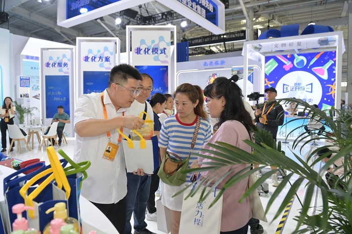 即将进入化工类知名高校就读的某学生家长,则在集团展台主动询问集团主业发展方向,特别了解危化品全链条管理的“北化方案”以及“北化服务”涉及的检验检测领域,并表示,希望自己的孩子毕业后能够在首都化工产业发展。