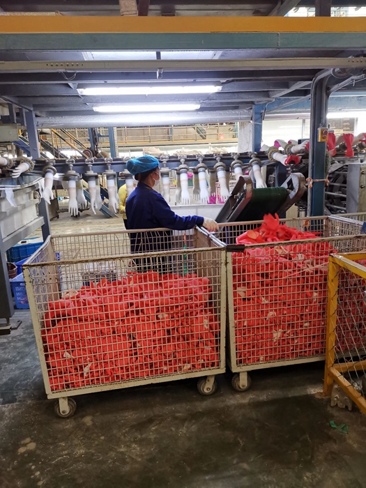 随着各地区复工复产的推进,以及“外防输入”和“社区疫情防控”力度的不断加大,工业领域疫情防控、普通居民的居家防控对专业防护手套的需求急剧增加。为全面履行国企社会责任,华腾橡塑在重点保供医用手套的前提下,努力克服京内、京外双线生产的各种困难,全力保障工业用和家用防护手套市场供应。日前,京内已投产2条生产线,京外已投产5条生产线,均满负荷运行。