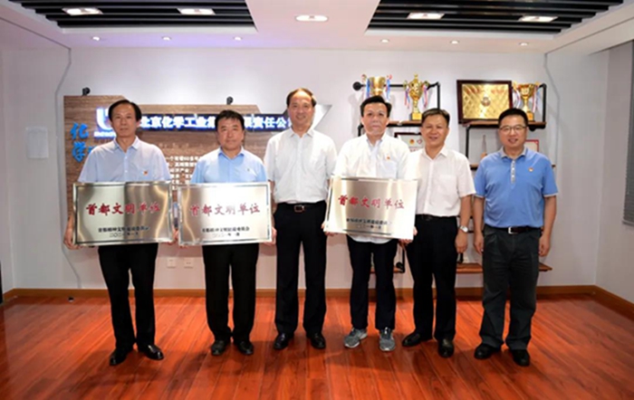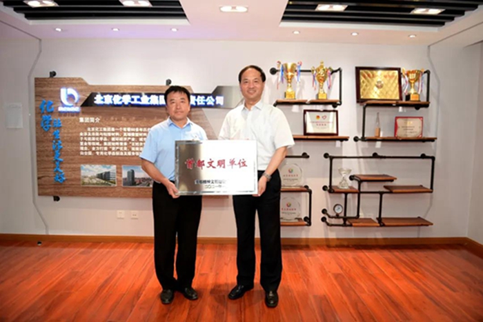 9月1日,乐玩(中国)党委书记、董事长王国华向获首都文明单位称号的3个单位授牌,党委副书记吴瑞峰,总经理助理、华腾拓展公司党总支书记李泳,化研院党总支书记杨传忠,华腾天海公司党总支书记崔志宏参加授牌仪式。