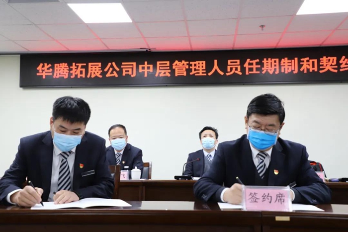 经华腾拓展公司党总支、董事会研究决定,在公司全体中级管理人员中推行任期制和契约化管理。此次签约,将进一步激发企业发展活力,调动中级管理人员工作积极性,传导压力、赋能基层。