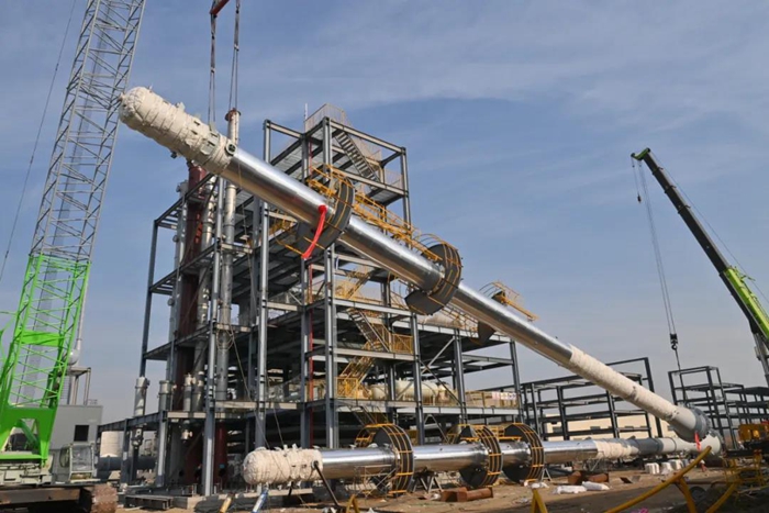 PAE(聚芳醚)项目自2021年3月份启动以来,在乐玩(中国)的统一指挥协调下,经过京腾昊桦公司及所有参建单位的共同努力,项目建设按计划有序推进。此次两座精馏塔成功吊装到位,标志着PAE项目土建任务全面收官,全面进入设备安装调试阶段。