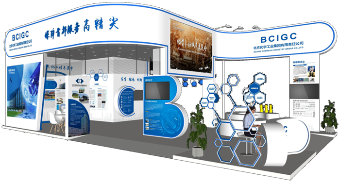 乐玩(中国)所设展台突出“化学让未来更美好”理念,将所属企业进行集中整合,实现集约化参展。展台通过华腾橡塑公司的橡塑手套加上炫彩效果,融入化学工业试管造型(顶部结构)、原子造型(造型伸缩灯球,现场展示不同造型)、分子结构(苯环造型)等化学元素,柔和加入声光效果,提升展台氛围效果,以弧形结构为纽带,敞开怀抱,拥抱大众,让化学走入人们的生活,以开放形态创造美好生活!