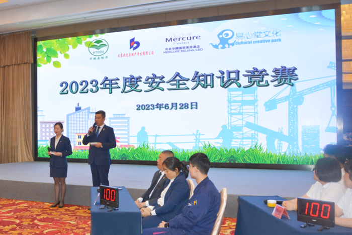 在随后开展的安全知识竞赛环节,来自房地产公司、华腾丹陛华、华腾美居酒店及合作方易心堂公司的共5支代表队参加竞赛,赛程分为必答题、抢答题、风险题等三个环节。对于此次知识竞赛,各单位都给予高度重视,并进行了充分的前期准备。