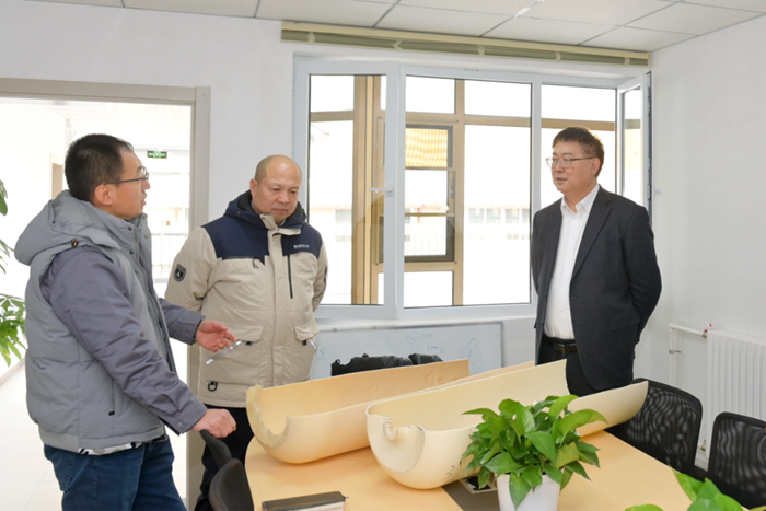 在元旦佳节到来之前,陈宇还专门慰问了一线科技人员,看望了华腾京研专家张宜鹏。陈宇仔细询问了张宜鹏及其他科研人员工作情况,鼓励大家要坚持企业为主体的科技创新机制,加强自主创新,努力攻克企业“卡脖子”问题,早日完成成果转化,拿出符合市场需求的产品。