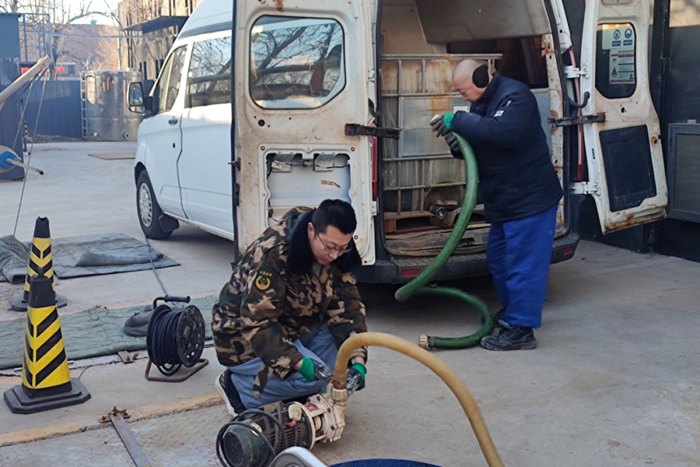 就在大年初六凌晨4时许,当班的党员同志们按时将环保试剂配送到北京固废物流有限公司消纳站,按照工作安排,当天要把1吨的除磷剂输送到反应罐中,他们熟练地进行插管、接泵、架线等各项工作。同时,他们还要把500公斤的柠檬酸固体送到消纳站仓库,以保证节日期间正常之需。