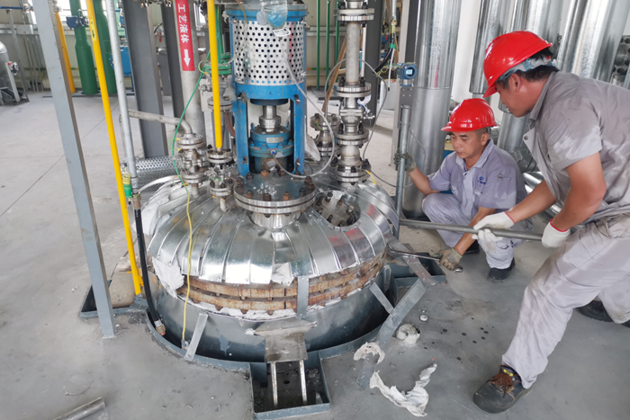 从液体原料投料到成品生产及自动灌装,各工艺环节严格按照作业指导书规定紧张有序实施操作。经过“退城入园项目”干部职工夜以继日努力,于8月11日产出第一釜聚酯半成品,各项指标合格、外观色度明显优于原生产装置的产出品;8月15日,粘合剂工艺段关键子系统通过实施验证;8月17日,粘合剂成品工艺成功打通,为22日产出合格产品创造了条件。
