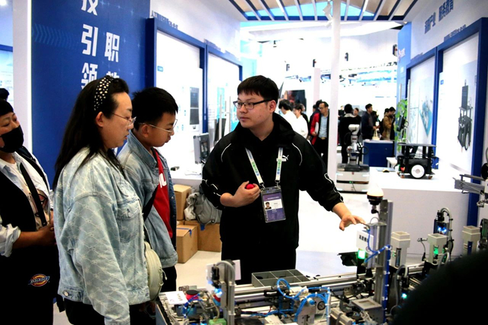 在展区现场,技师学院自主培养的世界技能大赛金牌选手,结合自身成长经历,向观众讲述“技能成才技能报国故事”,展现了青年高技能人才传承匠心、为国争光的卓越风采。